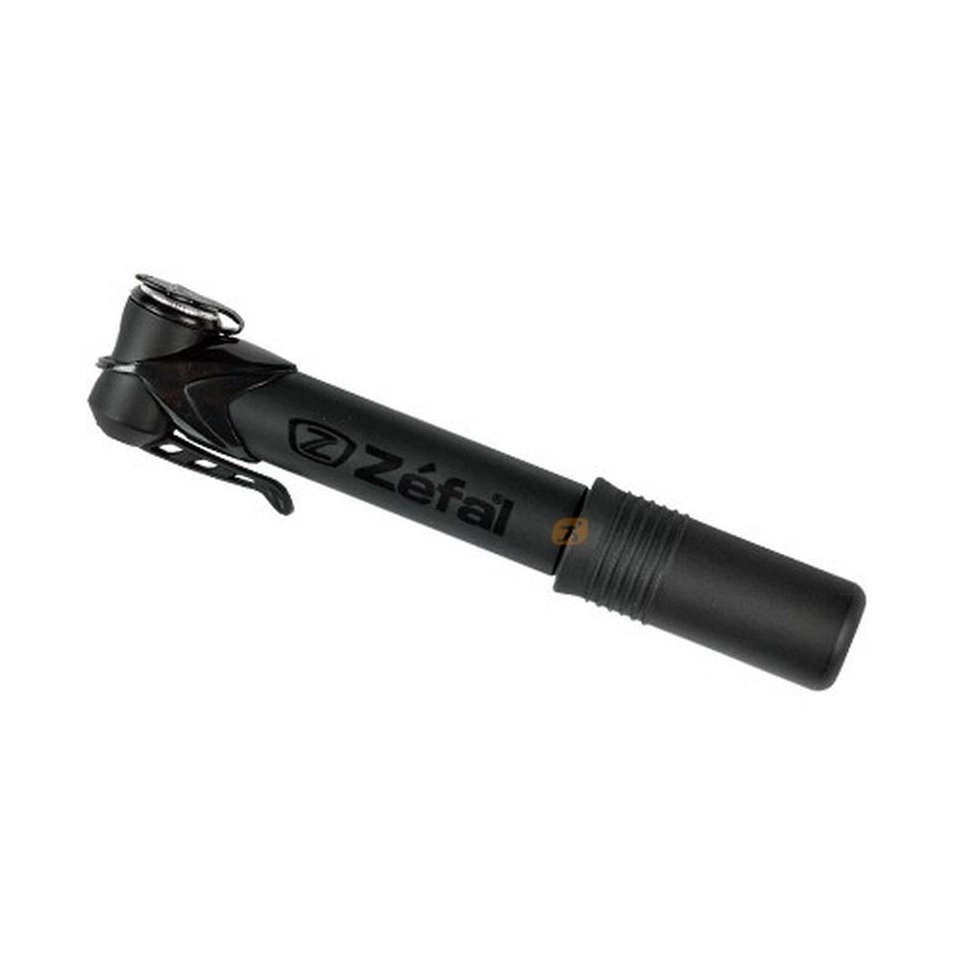 Minibomba Zéfal compacta, ligera y elegante. · Minibomba de alto volumen. · Fabricada en durable aluminio · Reversible Presta / Schrader · Inflado: 100 psi / 7 bar · Longitud: 165 mm · Peso: 88 gr. · Incluye soporte para la bici.