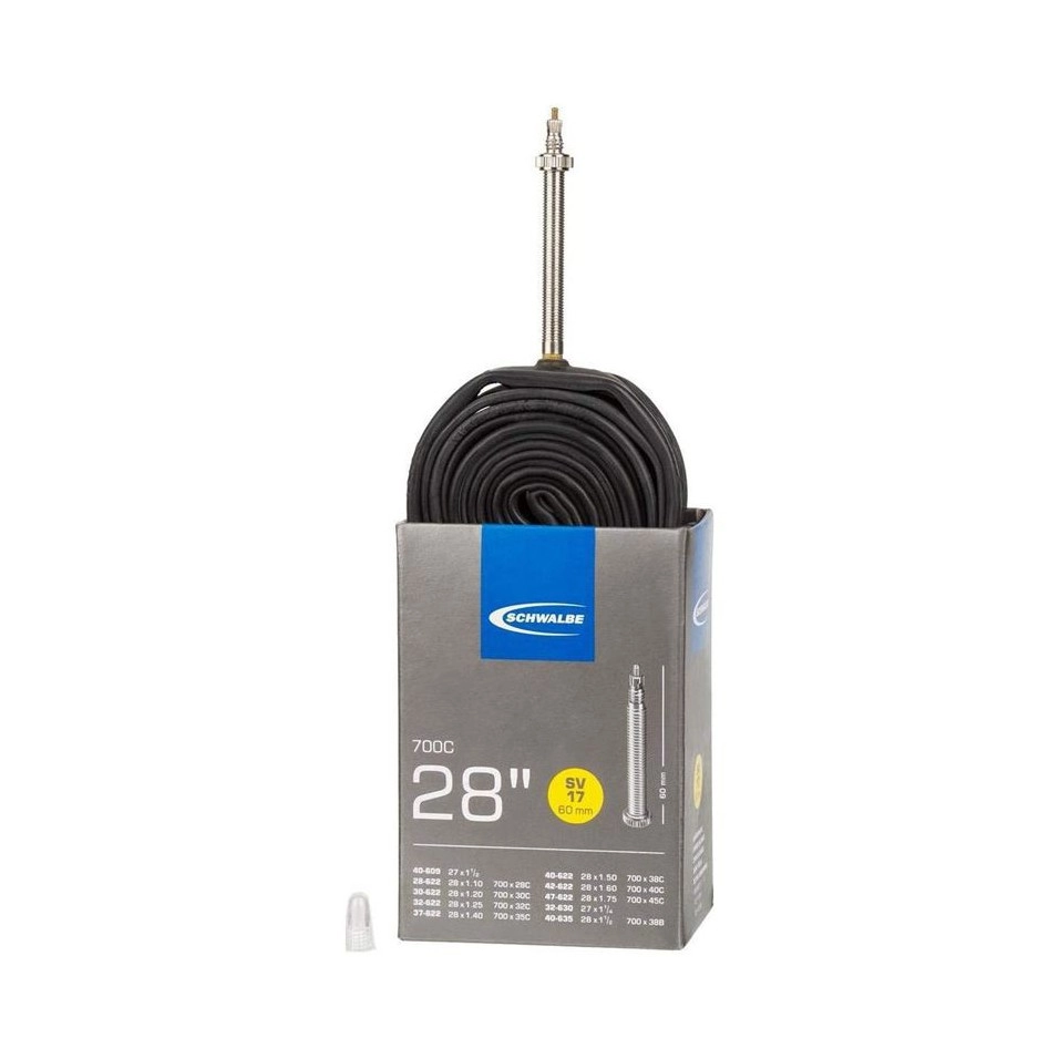 Cámara de aire Schwalbe SV17 Características: ·Válvula: Presta 60mm ·Medidas: 27/28×1 1/8·1.75 ·ETRTO: 28/47·622/635