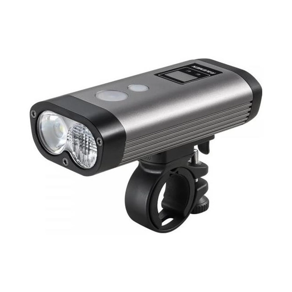RAVEMEN LED PR1200 Incluye las nuevas lentes Ravemen «Dual Lens» e «Hilo», diseñadas con un innovador software óptico profesional de alta eficiencia, con el propósito de crear un foco con haz de luz similar a los faros de automoción. Dispone de display digital, control remoto, control de temperatura, estanqueidad IPX8, un peso de 213 gramos y batería de Litio de 5200 mAh con autonomía de 21 horas y de 2 horas a máxima potencia. Foco delantero válido tanto para bicicletas de montaña como d