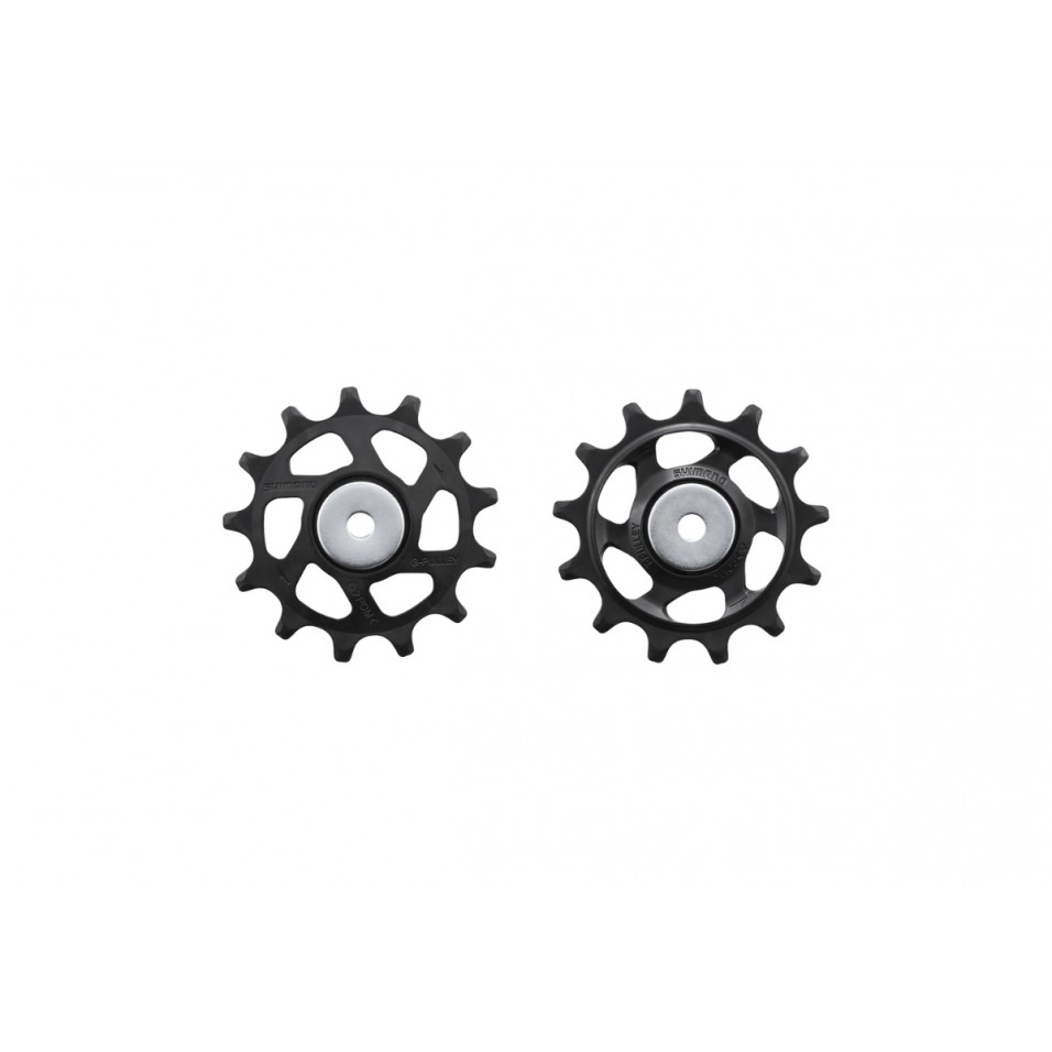 Todos los recambios que necesites los tenemos en Escapa. Juego de poleas de cambio SHIMANO (RD-M7100) compatibles con los grupos SLX M7100 y DEORE M6100. Kit formado por una polea guía y una polea tensora con 13 dientes cada una con casquillos de deslizamiento que aseguran su deslizamiento de forma suave y fiable en el cambio trasero.
